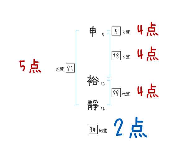 申裕靜さんの画数の鑑定結果