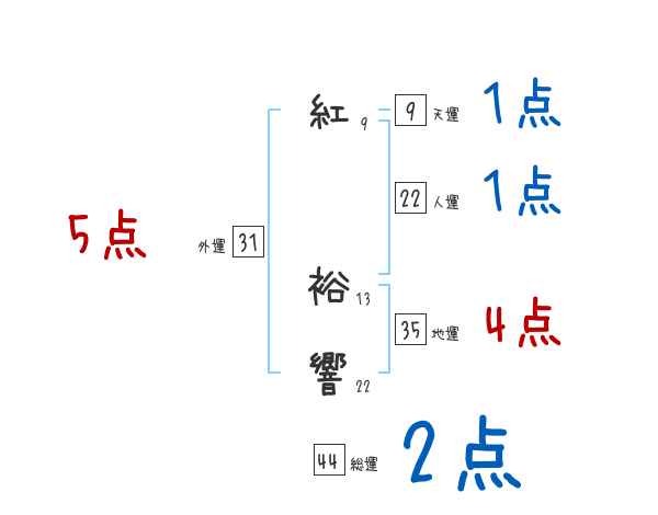 紅裕響さんの画数の鑑定結果