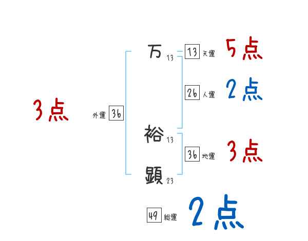 万裕顕さんの画数の鑑定結果