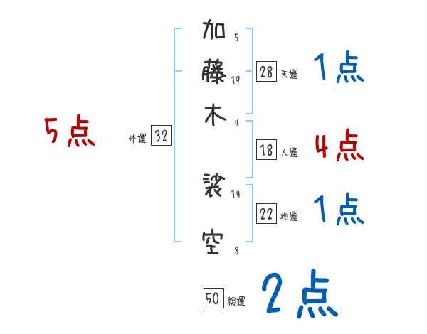 外運![]() | 加藤木裟空さんの外運は32画の5つ星!柔軟性があり成功する。チャンスが多く金運が良い。 生活面を象徴する運勢です。外部から受ける影響力を表し、結婚運、家庭運や職場、環境への順応性を表します。 |