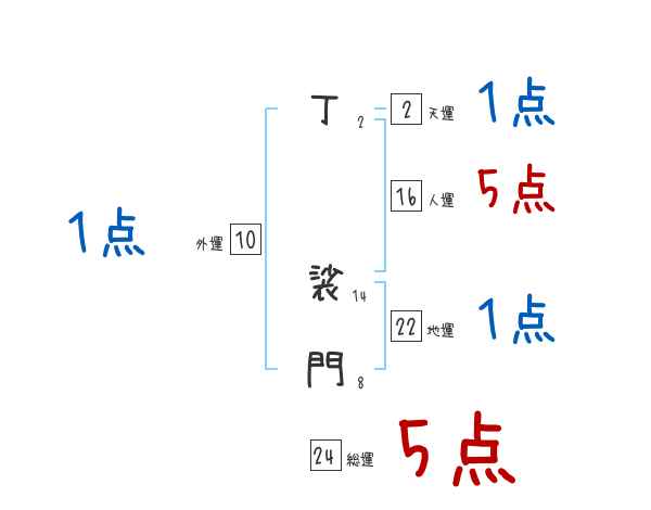 丁裟門さんの画数の鑑定結果