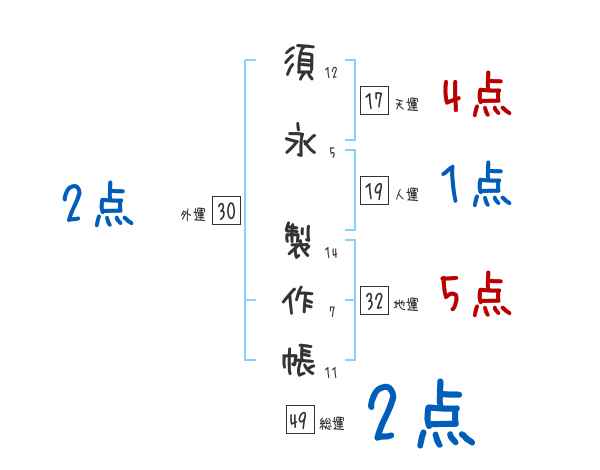 地運![]() | 須永製作帳さんの地運は32画の5つ星!柔軟性があり成功する。チャンスが多く金運が良い。 個性を表す基礎的な運勢です。性格形成や対人関係、行動力など家庭環境に影響されます。主に誕生してから20歳くらいまでの若年期の運勢を表します。 |