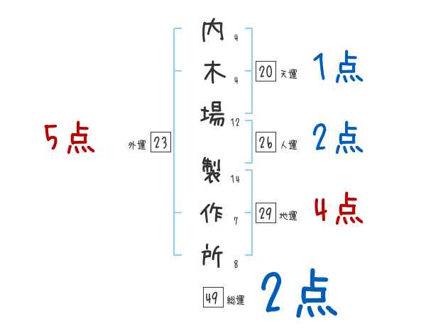 内木場製作所さんの画数の鑑定結果