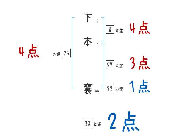 天運![]() | 下本襄さんの天運は8画の4つ星!勤勉家。根気強く努力し成功する。忍耐力がある。 家系が持つ宿命的な運勢を表します。祖先から受け継いだ苗字ですので自分の力が及びません。家柄を象徴します。 |
