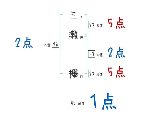 三瀬襷さんの画数の鑑定結果