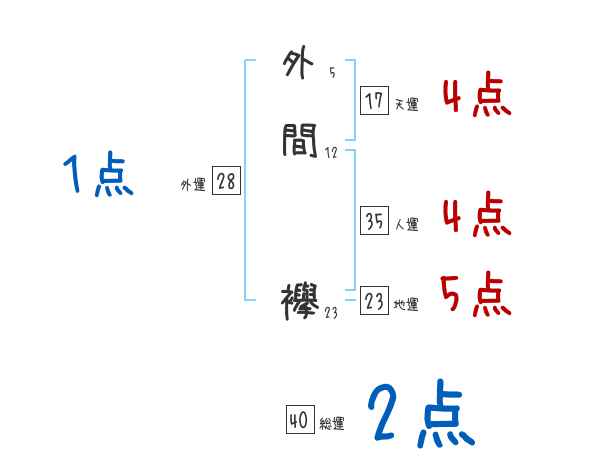 天運![]() | 外間襷さんの天運は17画の4つ星!積極的な行動力。地位を気づき財産を手に入れる。純粋な心と直感力。 家系が持つ宿命的な運勢を表します。祖先から受け継いだ苗字ですので自分の力が及びません。家柄を象徴します。 |
