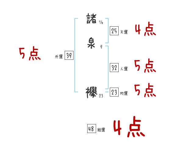 諸泉襷さんの画数の鑑定結果