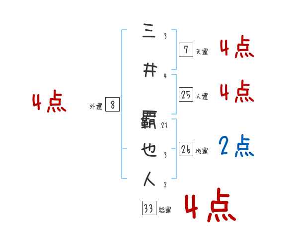 三井覇也人さんの画数の鑑定結果