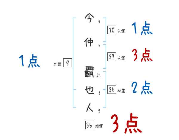 今仲覇也人さんの画数の鑑定結果