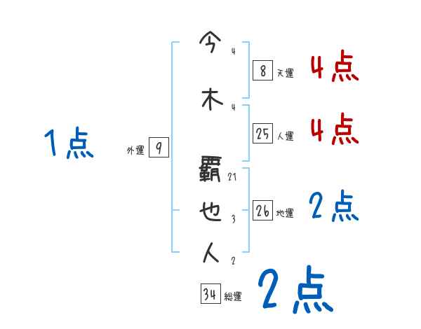今木覇也人さんの画数の鑑定結果