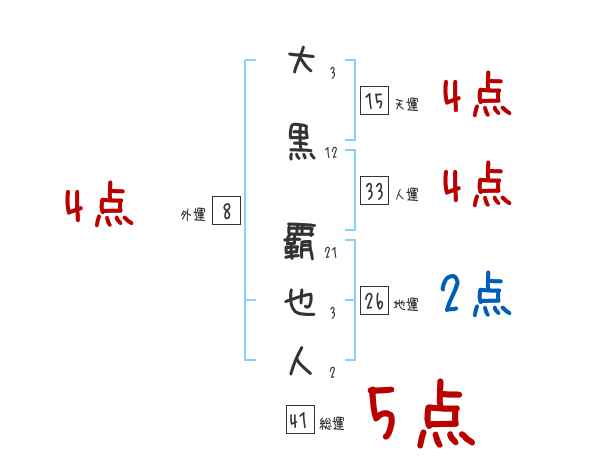 大黒覇也人さんの画数の鑑定結果