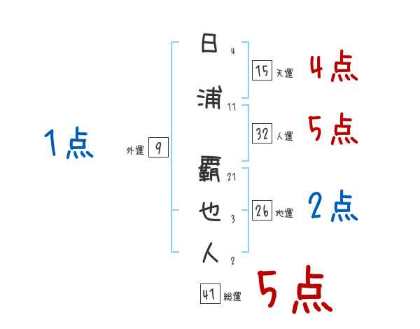 日浦覇也人さんの画数の鑑定結果
