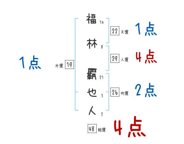 福林覇也人さんの画数の鑑定結果
