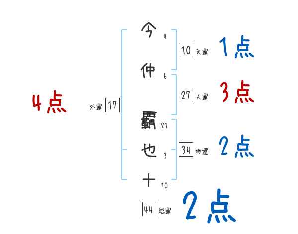 今仲覇也十さんの画数の鑑定結果
