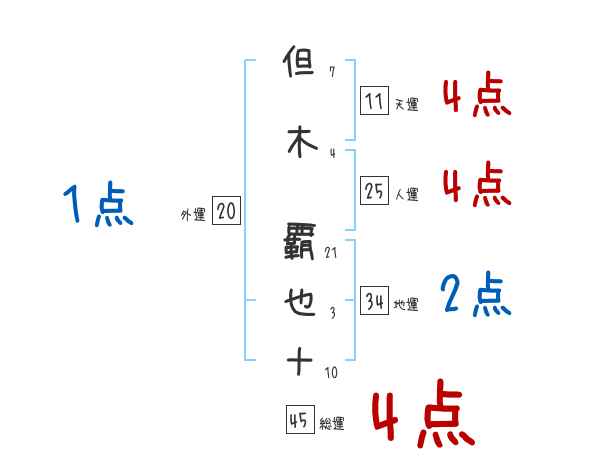 天運![]() | 但木覇也十さんの天運は11画の4つ星!着実に富や地位を得る幸運な人生。 家系が持つ宿命的な運勢を表します。祖先から受け継いだ苗字ですので自分の力が及びません。家柄を象徴します。 |
