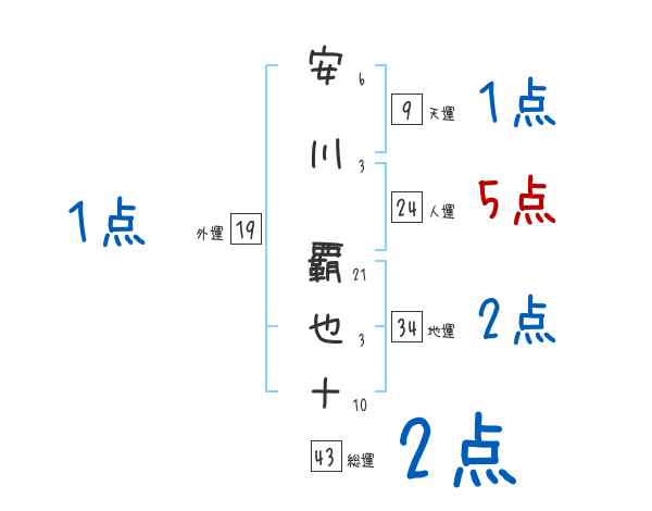 外運![]() | 安川覇也十さんの外運は19画の1つ星!優れた才能を持ちますが、協調性が足りないことも。周りの人と協力する事を意識しましょう。 生活面を象徴する運勢です。外部から受ける影響力を表し、結婚運、家庭運や職場、環境への順応性を表します。 |