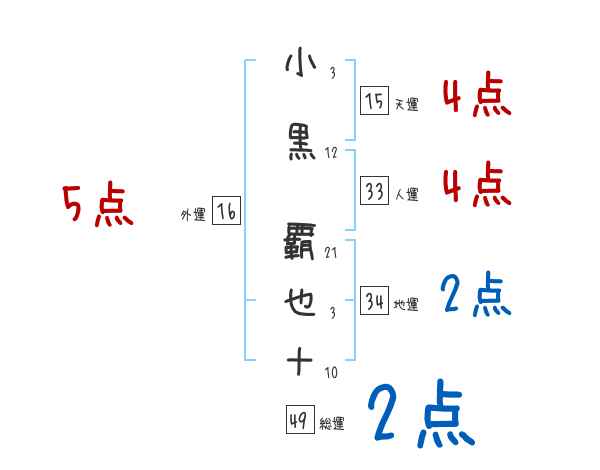 外運![]() | 小黒覇也十さんの外運は16画の5つ星!人望が厚く大きく発展する。逆転成功が見える。 生活面を象徴する運勢です。外部から受ける影響力を表し、結婚運、家庭運や職場、環境への順応性を表します。 |