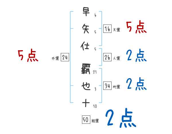 天運![]() | 早矢仕覇也十さんの天運は16画の5つ星!人望が厚く大きく発展する。逆転成功が見える。 家系が持つ宿命的な運勢を表します。祖先から受け継いだ苗字ですので自分の力が及びません。家柄を象徴します。 |