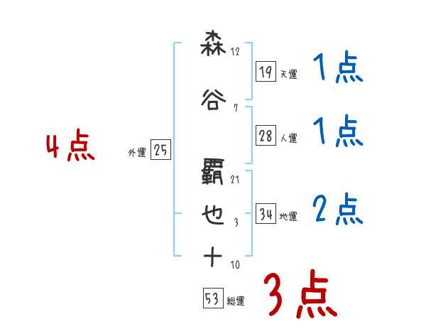 天運![]() | 森谷覇也十さんの天運は19画の1つ星!優れた才能を持ちますが、協調性が足りないことも。周りの人と協力する事を意識しましょう。 家系が持つ宿命的な運勢を表します。祖先から受け継いだ苗字ですので自分の力が及びません。家柄を象徴します。 |