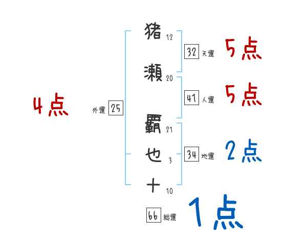 猪瀬覇也十さんの画数の鑑定結果