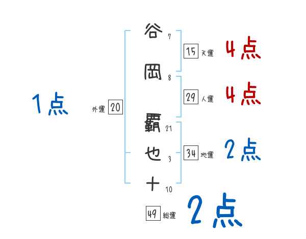 谷岡覇也十さんの画数の鑑定結果