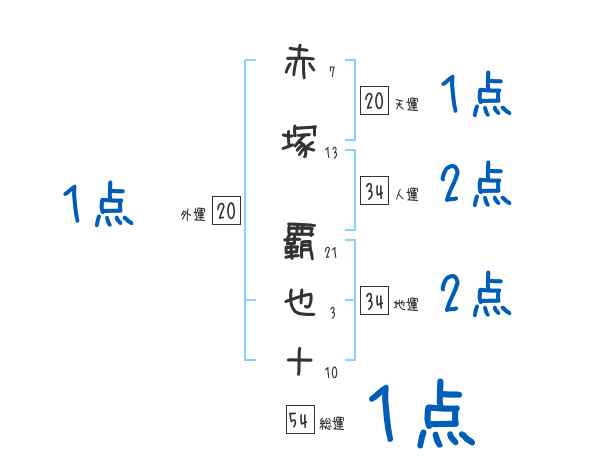 赤塚覇也十さんの画数の鑑定結果