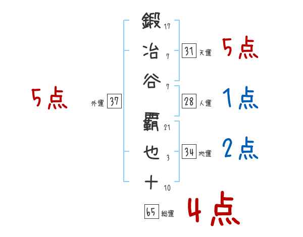 鍛冶谷覇也十さんの画数の鑑定結果