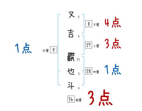 総運![]() | 又吉覇也斗さんの総運は36画の3つ星!先見性が豊かです。多少神経質で苦労することも。 あなたの人生を表す1番重要な運勢です。生涯を通じて影響する総合運となり、主に50歳以降の晩年期に影響を及ぼします。 |
