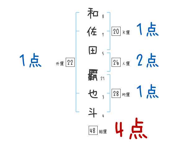 外運![]() | 和佐田覇也斗さんの外運は22画の1つ星!努力することが苦手ないっぽう手先が器用。芸術性にも優れる。 生活面を象徴する運勢です。外部から受ける影響力を表し、結婚運、家庭運や職場、環境への順応性を表します。 |