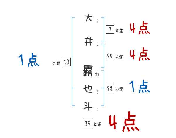 総運![]() | 大井覇也斗さんの総運は35画の4つ星!温厚な性格で感受性が高い。穏和な性格で人望が厚い。 あなたの人生を表す1番重要な運勢です。生涯を通じて影響する総合運となり、主に50歳以降の晩年期に影響を及ぼします。 |