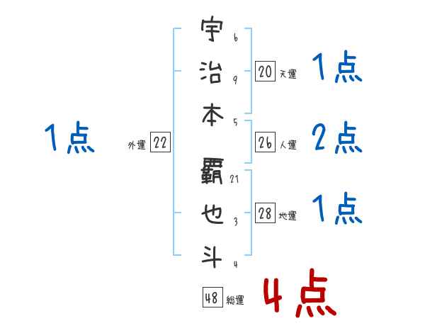 宇治本覇也斗さんの画数の鑑定結果