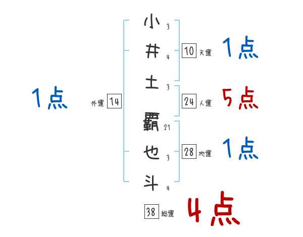 小井土覇也斗さんの画数の鑑定結果