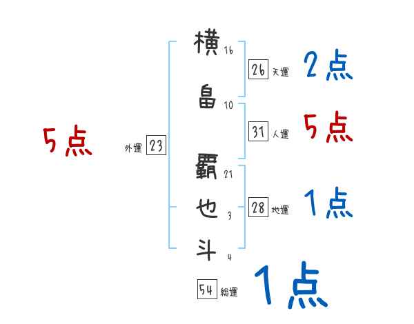 地運![]() | 横畠覇也斗さんの地運は28画の1つ星!家庭環境に注意。スポーツで活躍できる能力があるかも。 個性を表す基礎的な運勢です。性格形成や対人関係、行動力など家庭環境に影響されます。主に誕生してから20歳くらいまでの若年期の運勢を表します。 |