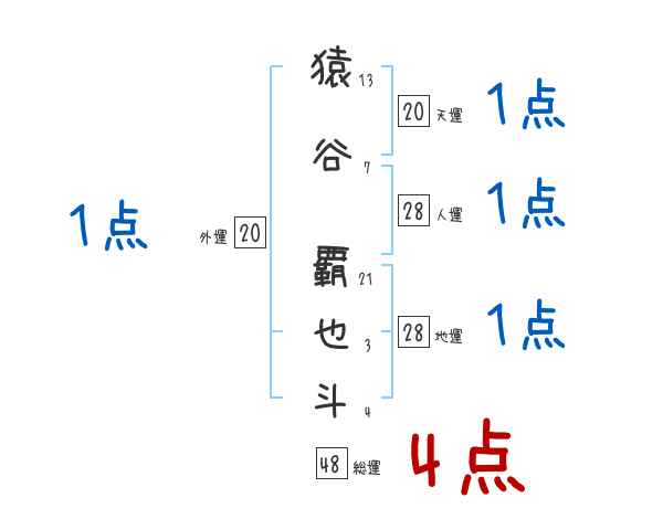 猿谷覇也斗さんの画数の鑑定結果