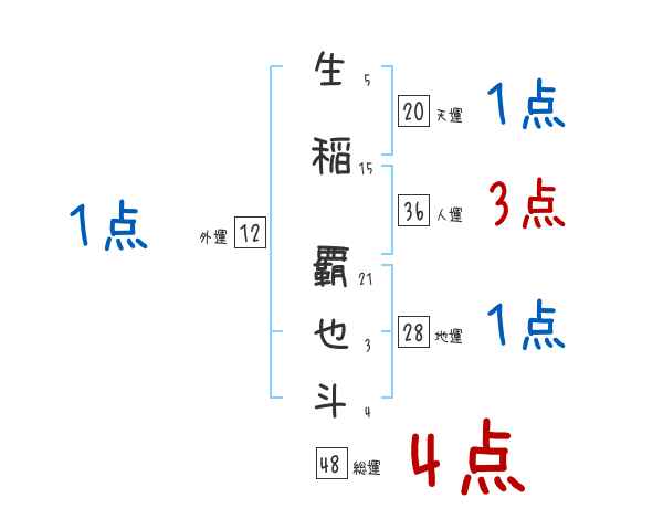 地運![]() | 生稲覇也斗さんの地運は28画の1つ星!家庭環境に注意。スポーツで活躍できる能力があるかも。 個性を表す基礎的な運勢です。性格形成や対人関係、行動力など家庭環境に影響されます。主に誕生してから20歳くらいまでの若年期の運勢を表します。 |
