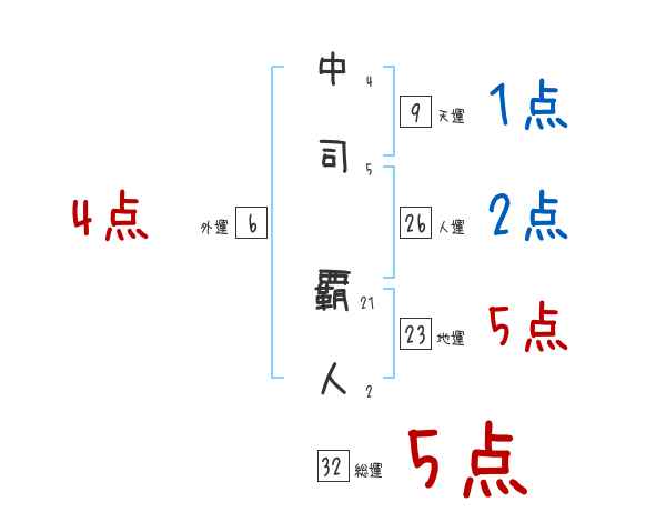 中司覇人さんの画数の鑑定結果
