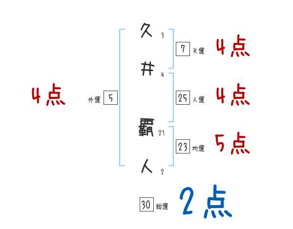 久井覇人さんの画数の鑑定結果