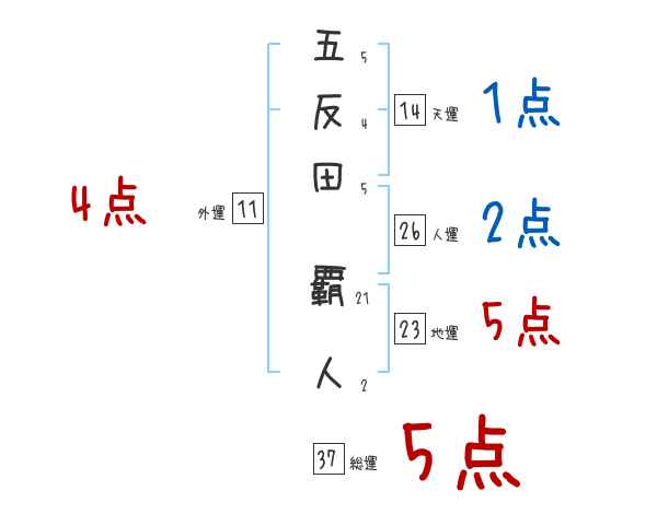 天運![]() | 五反田覇人さんの天運は14画の1つ星!人に対して優しいがストレスを溜め込みがち。人間関係のトラブルを避けるよう気をつけましょう。 家系が持つ宿命的な運勢を表します。祖先から受け継いだ苗字ですので自分の力が及びません。家柄を象徴します。 |