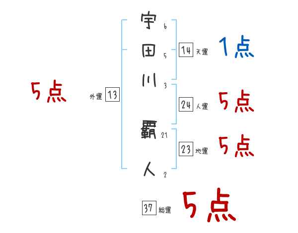 宇田川覇人さんの画数の鑑定結果