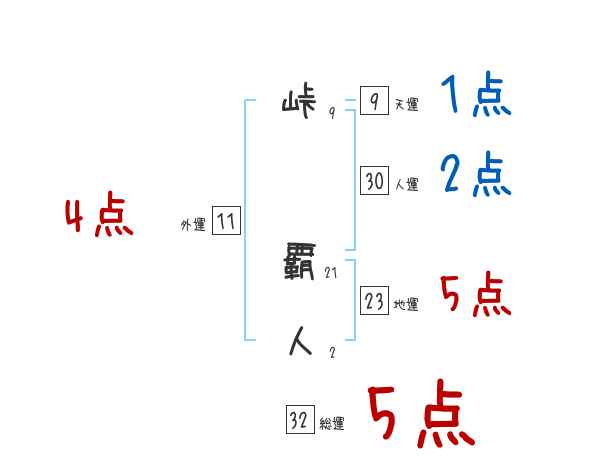 天運![]() | 峠覇人さんの天運は9画の1つ星!消極的で才能を発揮することが苦手なことも。周りの意見に耳を傾けましょう。 家系が持つ宿命的な運勢を表します。祖先から受け継いだ苗字ですので自分の力が及びません。家柄を象徴します。 |