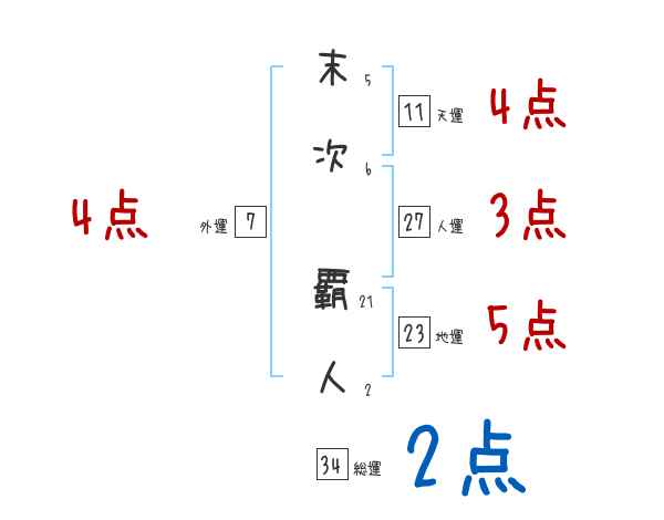 末次覇人さんの画数の鑑定結果