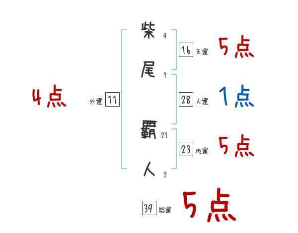 柴尾覇人さんの画数の鑑定結果