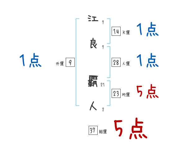 江良覇人さんの画数の鑑定結果