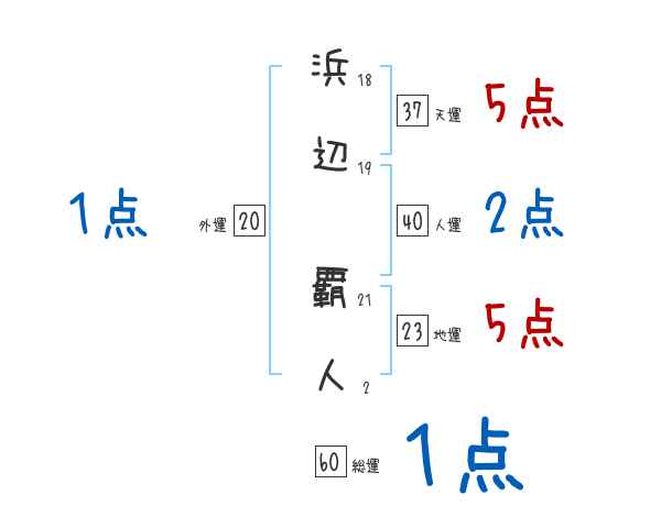 地運![]() | 浜辺覇人さんの地運は23画の5つ星!想像力に優れ活力がある。一代で成功し名誉を手に入れる。 個性を表す基礎的な運勢です。性格形成や対人関係、行動力など家庭環境に影響されます。主に誕生してから20歳くらいまでの若年期の運勢を表します。 |