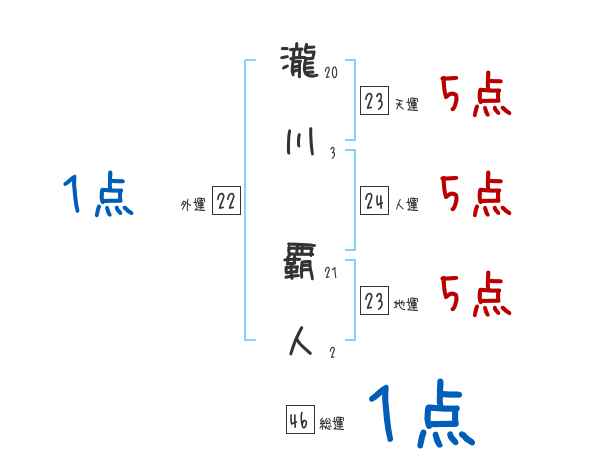 瀧川覇人さんの画数の鑑定結果