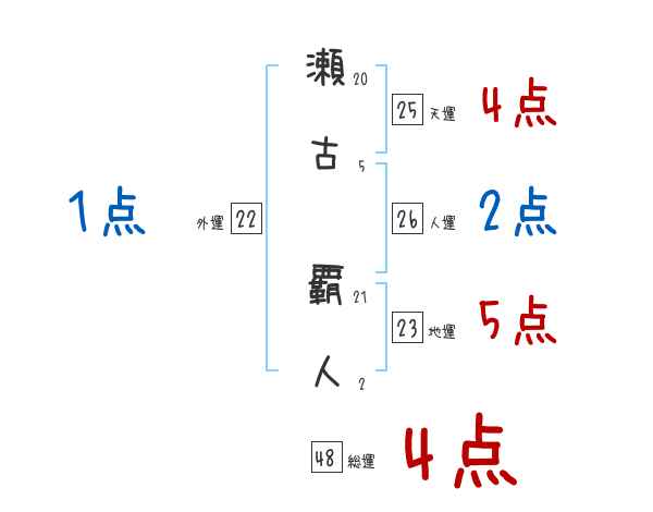 天運![]() | 瀬古覇人さんの天運は25画の4つ星!個性があり才能があふれる。強運の持ち主で発展する。 家系が持つ宿命的な運勢を表します。祖先から受け継いだ苗字ですので自分の力が及びません。家柄を象徴します。 |