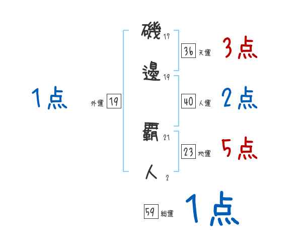 磯邊覇人さんの画数の鑑定結果