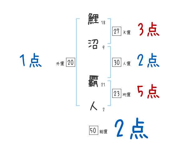 鯉沼覇人さんの画数の鑑定結果