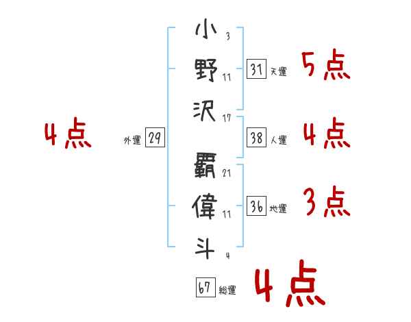 小野沢覇偉斗さんの画数の鑑定結果