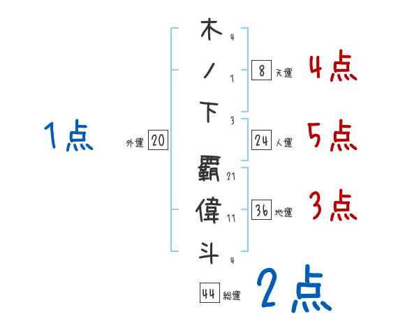 木ノ下覇偉斗さんの画数の鑑定結果
